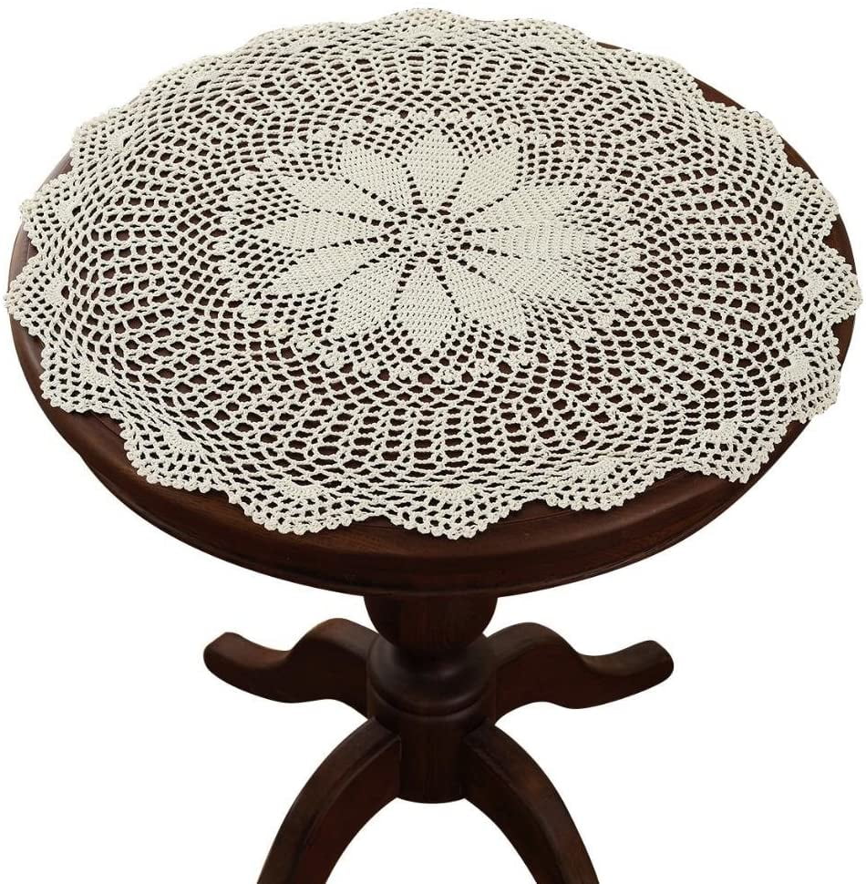 23 Inch Beige Round Handmade Crochet Lace Tablecloth Doilies Walmart Com