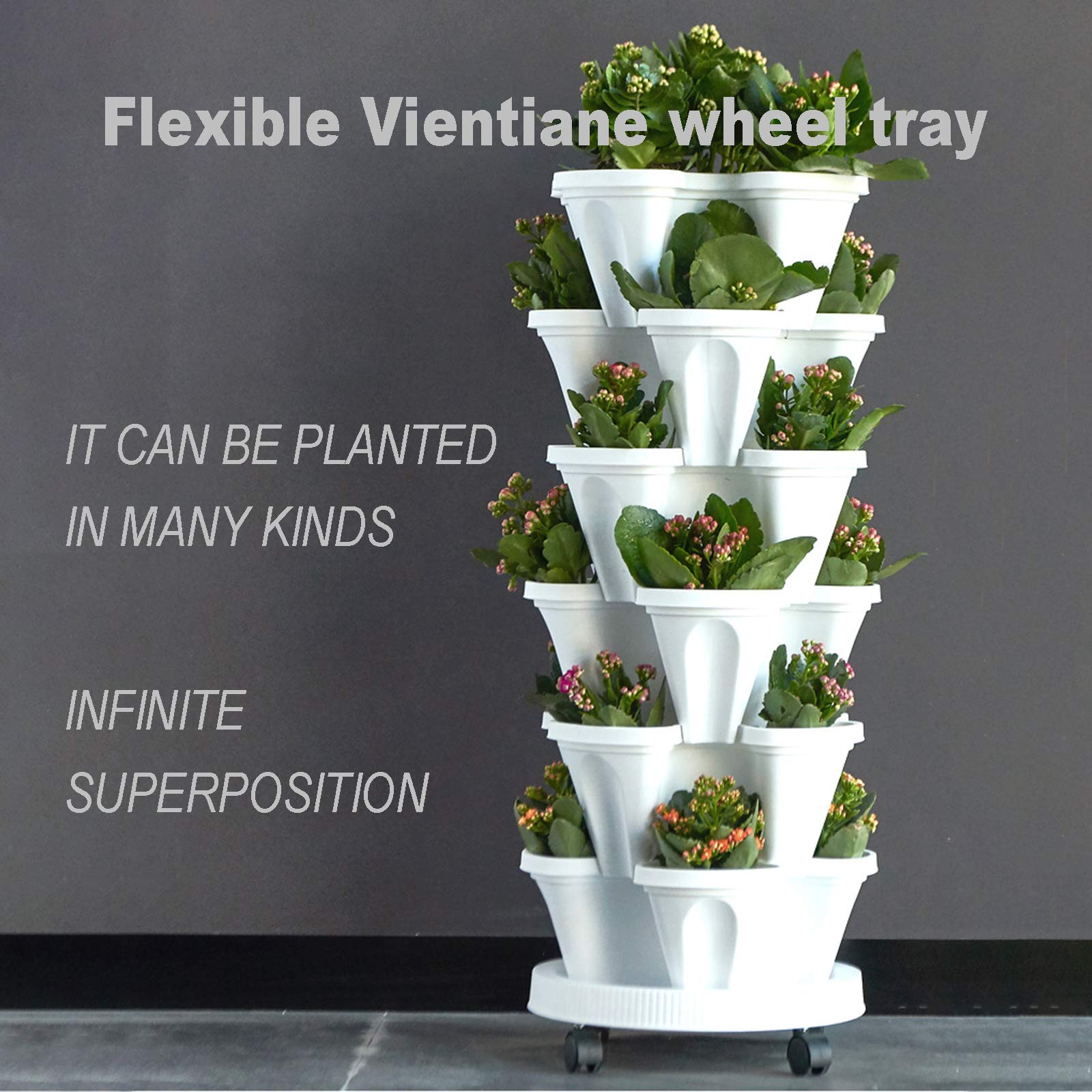Amazon Com Gsd 6 Tiered Stackable Vertical Planters Indoor Outdoor 24 Pots Garden Tower Planters For Strawberry Herb And Flower 5pcs X Movable Casters Bottom Saucer X 1 White Patio Lawn Garden